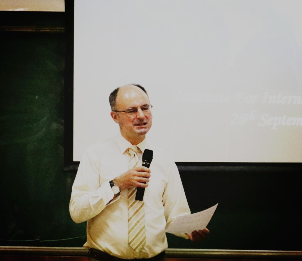 颁奖后,Stephen. J. Rake老师对活动进行了总结发言,他提到演讲比赛时,选手们的表现发挥让他感到欣慰。另外,他还提到一些演讲时的注意点,比如不要一昧读稿、善于运用肢体语言和眼神交流等,鼓励大家自信地陈述自己的观点、展现自己的风采,给选手们在今后的赛事中以中肯的建议。