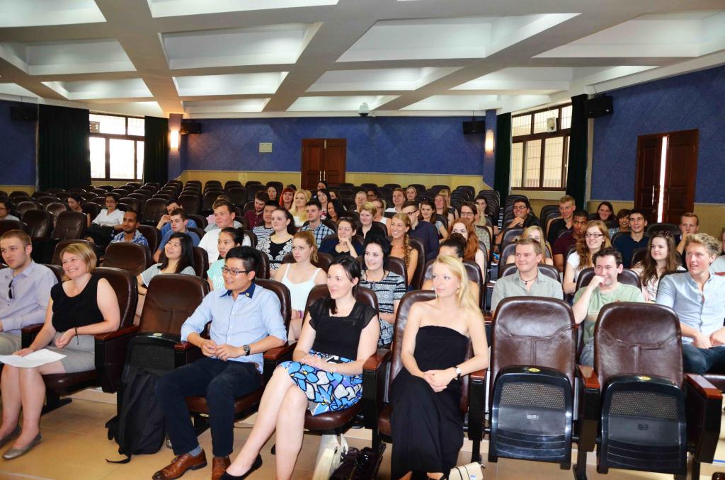 2013年9月9日上午,英国兰卡斯特大学与贝德福特郡大学2013秋季研修团开班仪式在留学生教育学院106室隆重举行。我校国际合作与交流处副处长梁洁、留学生教育学院院长梁学宏、办公室主任吴艳,兰卡斯特大学领队老师Julia Devaux、Danny Yap以及贝德福特郡大学领队老师Suzanne Gillard和81名来自这两所英国大学的师生出席了开班仪式。