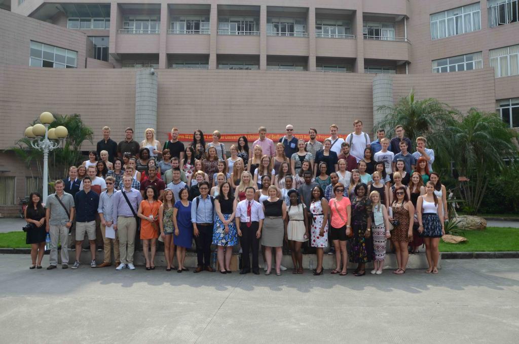 贝德福特郡大学研修团则是首次前来我校。在开班仪式上,该校领队老师分别用普通话和粤语向大家问好,赢得了一片热烈的掌声。梁学宏向两校的三位领队老师赠送纪念品后,全体师生合影留念。