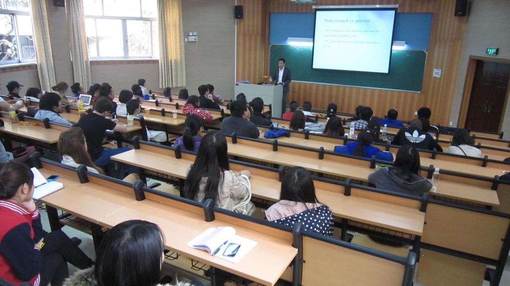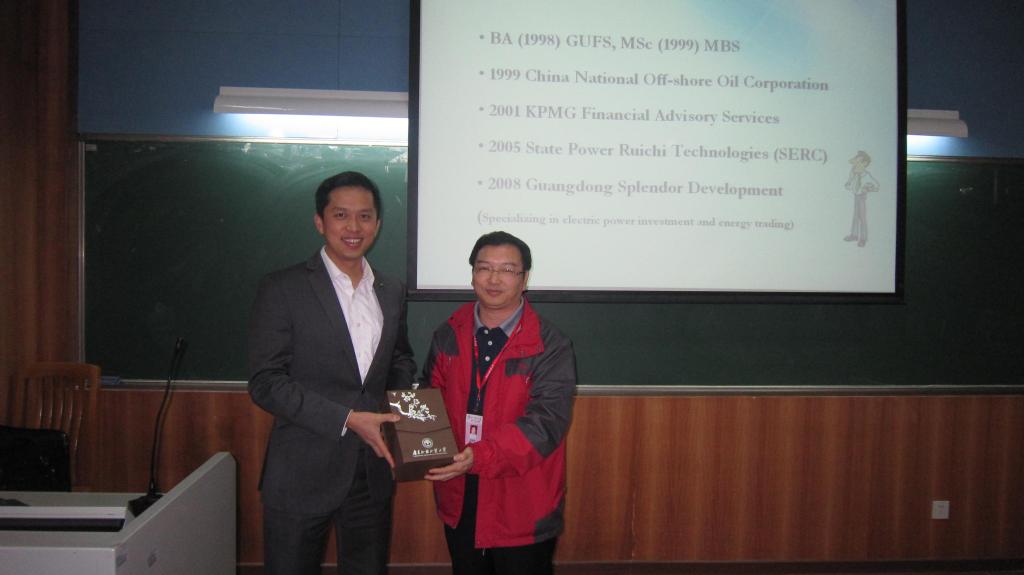 林海杰董事长在国有企业与私有企业均有过工作经历,他将自己丰富的工作经验总结为三个P:发展业务要靠人力(People),谈判协议要看盈利能力(Profitability),项目的执行在于过程(Procedures)。然后他对比分析了国有企业与私有企业在这三个方面的差异,并向同学们介绍了应对的不同方法与技巧。