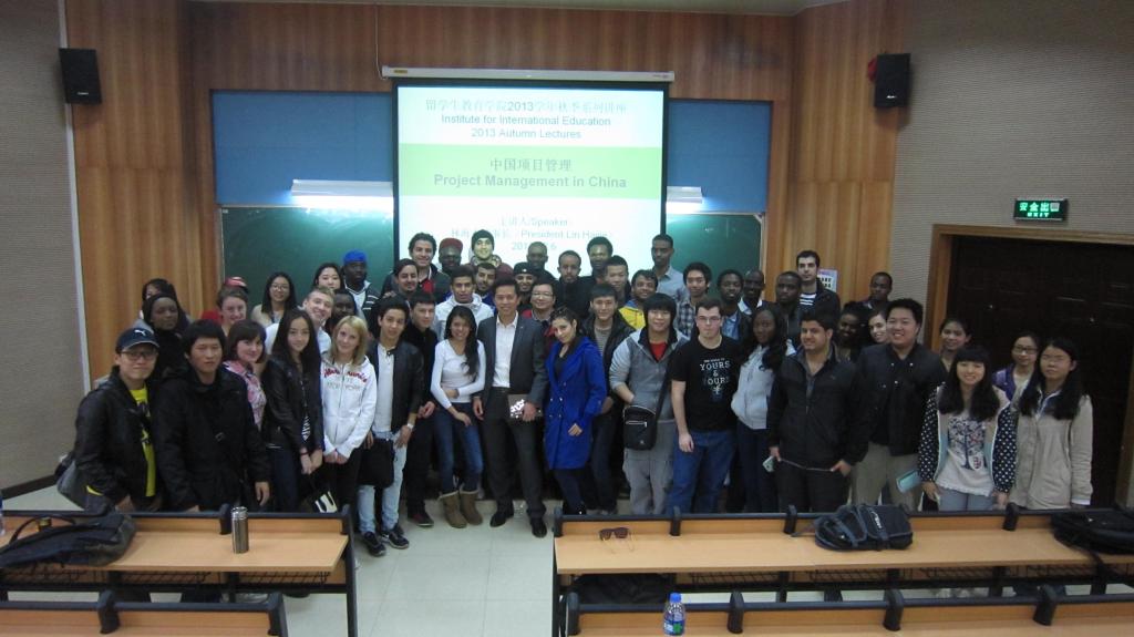 12月6日下午,留学生教育学院2013年秋季系列讲座第3讲在第七教学楼107举行。我校杰出校友林海杰董事长访问了留学生教育学院,并为留学生们作了题为“中国项目管理”的讲座。留学生教育学院院长梁学宏主持了这次讲座。