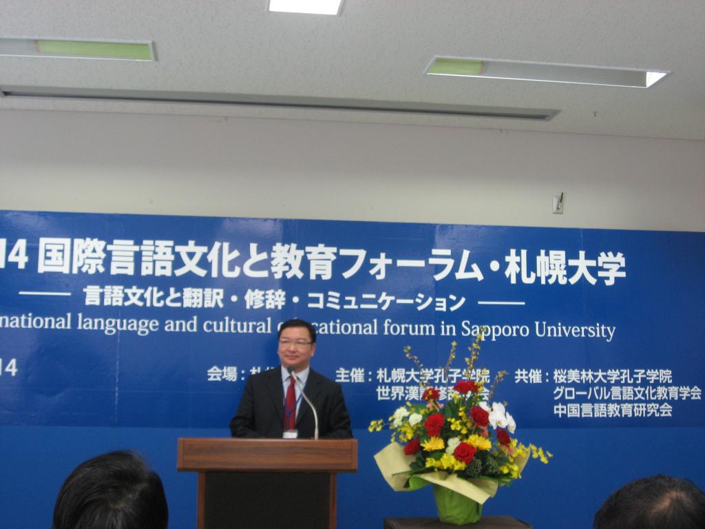 论坛开幕式由札幌大学孔子学院日方院长张伟雄主持,札幌大学桑原校长、中国驻札幌总领事滕安军分别致辞。世界汉语修辞学会会长、韩国外国语大学罗敏球教授、我校留学生教育学院梁学宏院长、世界汉语教学学会副会长(前日本中国语教育学会会长)、大阪大学古川裕教授分别代表与会的中日韩三国专家学者讲话。北海道日本中国友好协会名誉顾问古本英之、札幌大学孔子学院中方院长、我校东语学院潘洁敏老师以及韦立新老师、余六一老师等出席了论坛开幕式和分组讨论。中国语言教育学会秘书长、四川外国语大学姜孟教授也发来了贺信。