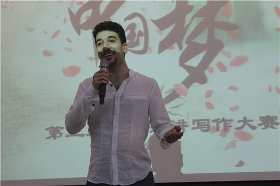 本网讯 5月21日,由我校留学生教育学院举办的第三届汉语演讲写作大赛“我与中国梦”在北校七教水上报告厅举行。该比赛有来自二十多个国家的多名留学生参加,通过汉语写作和演讲等形式,表达他们对中国的看法。出席本次大赛的有留学生教育学院副院长王凤兰,本科教研室主任郝红艳,语言进修教研室主任、HSK考试办公室主任范香娟以及多位指导老师。