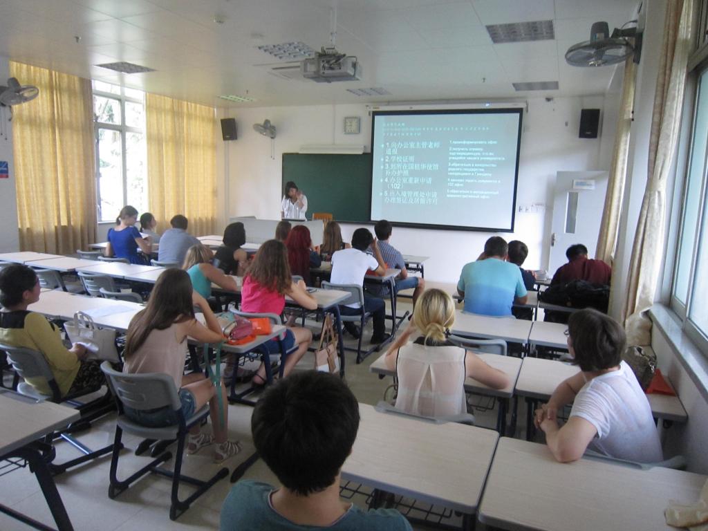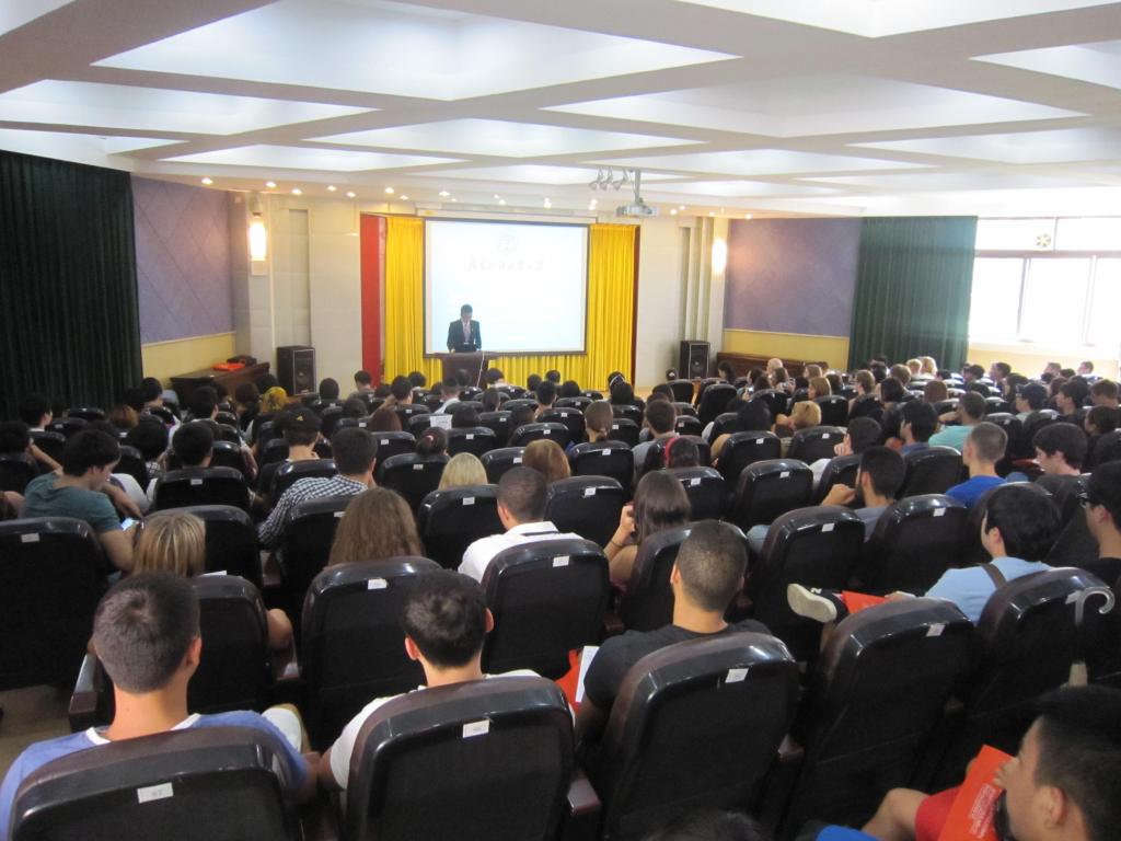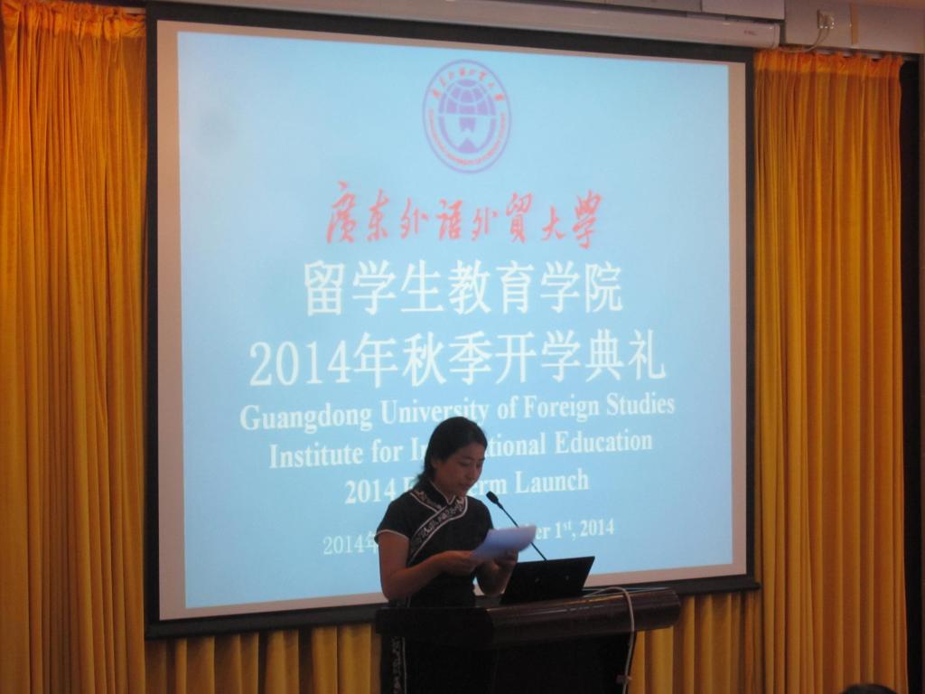 2014年9月1日下午,留学生教育学院2014年秋季开学典礼于第七教学楼106报告厅举行。留学生教育学院院长梁学宏、副院长王凤兰、办公室主任吴艳、全体教职工以及来自100多个国家的150多名新同学参加了此次开学典礼。本次开学典礼由学生工作主管王一仟主持。