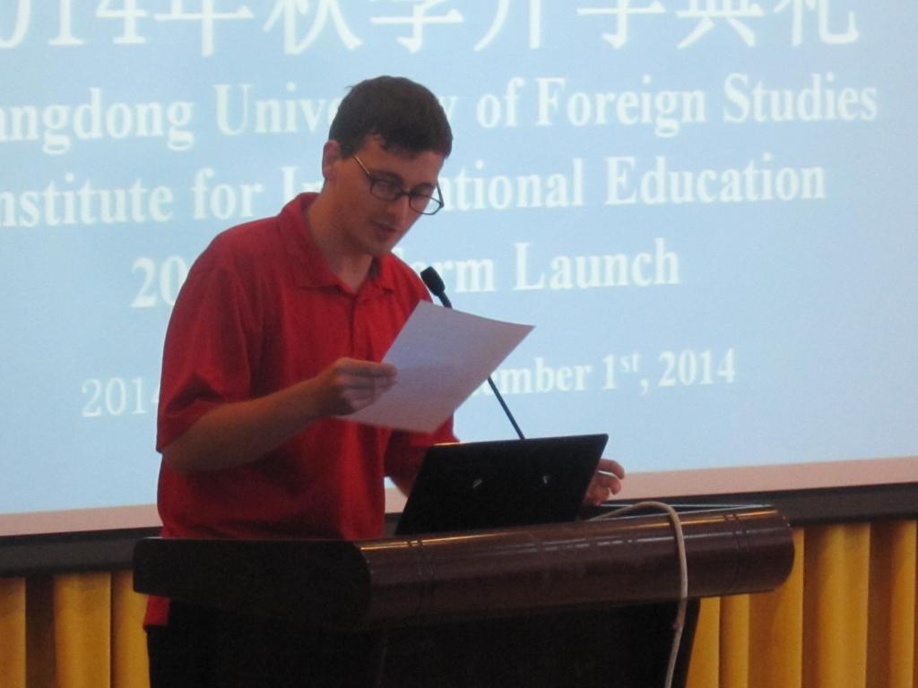 美国留学生SEMENSKE JASON ANDREW代表全体学历新生发言