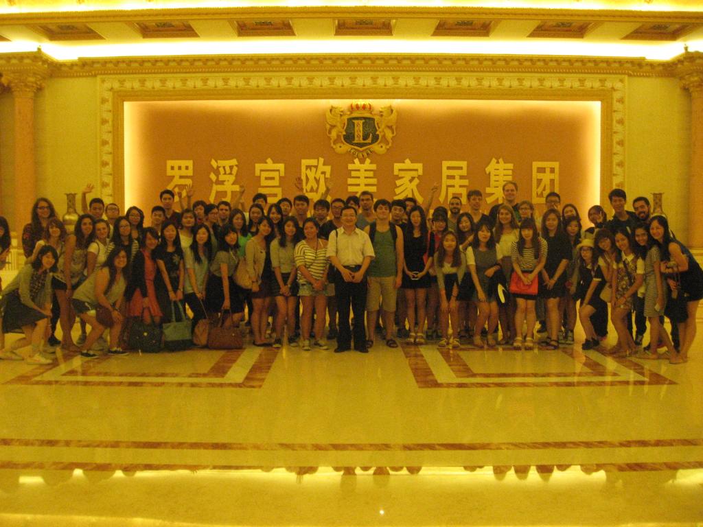 留学生教育学院师生首先参观了广东罗浮宫家居集团。当走进这座目前全球最高、占地面积最大的地标性家居主题建筑群时,全体师生被眼前的宏伟的场景所震撼,发出了阵阵的感叹。家居集团特意为来访的同学们提供了英语讲解员。在讲解员的引领下,同学们逐层参观了罗浮宫家居。来自美国的Karren表示,这是她第一次见到如此宏大的家居中心,并想体验在这里展示的每一样家具。