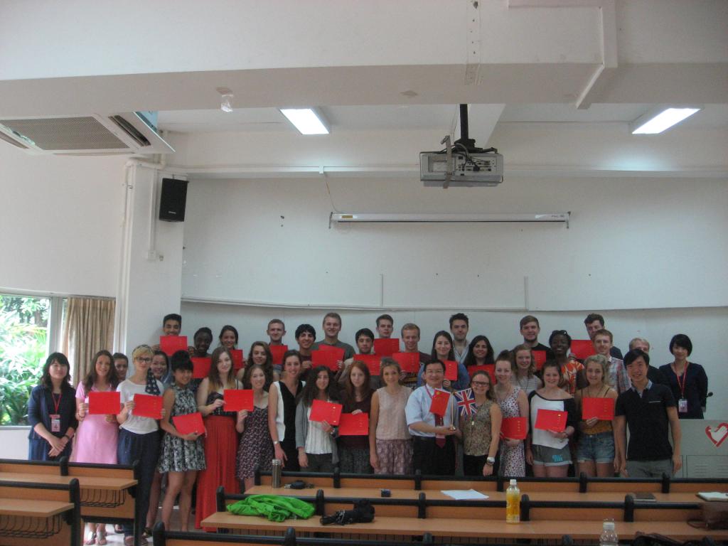2014年9月17日, 留学生教育学院在7教110为英国兰卡斯特大学广外研修团举办结业典礼。结业典礼由留学生学院项目助理吕峪晶主持,留学生教育学院院长梁学宏、项目主管周泉出席。