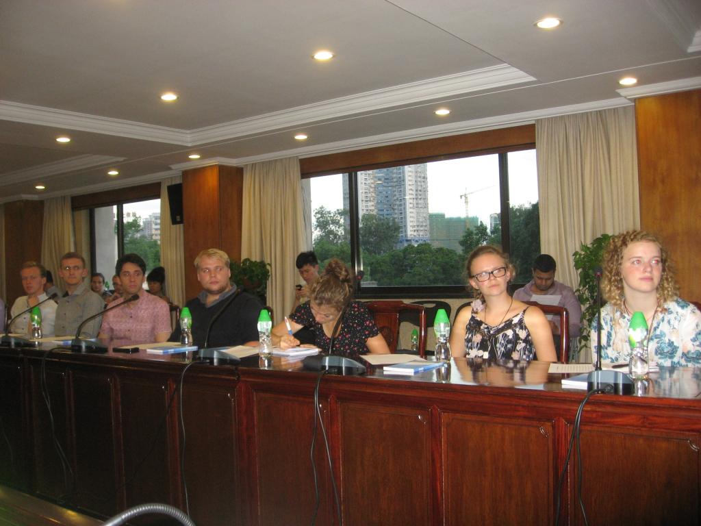 研修团四名学生代表上台致辞,他们分别回忆了两周以来在广州学习期间的点点滴滴。他们表示,在英国时对中国的了解十分有限,亲自到中国看看才知道中国和自己的想象很不一样。此次访华,他们喜欢上了广州的早茶和云吞面,也爱上了广州美丽的珠江夜景和高楼大厦。他们还对我校留学生教育学院老师对在华行程的精心安排表示感谢,也特别感谢抽出时间陪伴他们的志愿者同学。