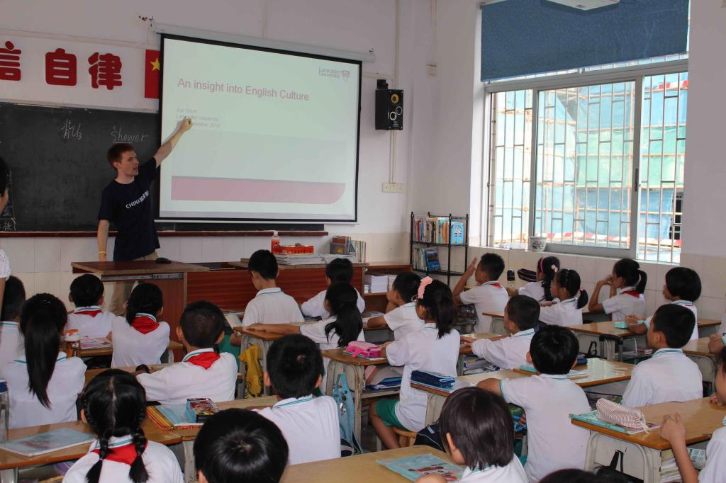 2014年9月19日至22日,英国兰卡斯特大学10名学生到访我校附属中(小)学,开展为期4天的观摩学习。在学习期间,每位同学跟随一位英语老师,除观摩英语课堂、协助老师准备课堂资料之外,他们还有机会进行一次试讲。英国同学们还发挥文化优势,举办活动课、英语角,用幻灯片、音乐、表演的方式向同学们介绍英国文化。
