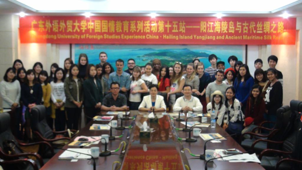 2014年11月15-16日,42位来自十六个国家的外国留学生在留学生教育学院院长梁学宏的带领下前往阳江,参加学院组织的第十五次中国国情教育系列活动——“阳江海陵岛与古代丝绸之路”。参与此次活动的留学生主要是我校国家留学基金委奖学金生、中国政府孔子学院奖学金生以及外国合作院校交换生。
