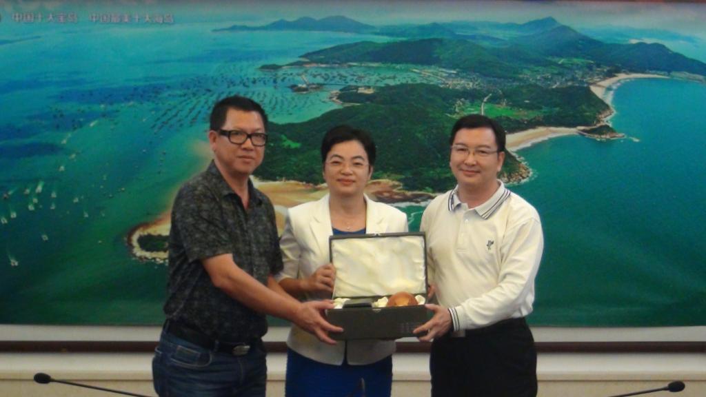 离开南海一号博物馆后,一行人来到了阳江市海陵岛经济开发试验区管委会,听取了关于海陵岛的介绍。海陵区委委员、区委宣传统战部部长叶秀华主持介绍会,区旅游文体局副局长吴锦利为大家讲解了海陵岛的人文风俗、旅游发展、产业开发等情况,让留学生们对海陵岛有更全面的了解。在听完吴局长的介绍后,梁学宏院长讲话,感谢海陵岛区委领导的热情接待和详尽介绍,指出中国国情教育系列活动旨在带领外国留学生参观中国政府、企业、社区、农村贫困地区等,让留学生们能亲身了解中国真正的发展情况,使到留学生们能更深入、全面、客观地了解真实的中国。介绍会由我校英语语言文化学院学生袁捷担任英语翻译。