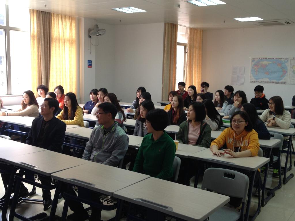 梁学宏院长首先向朝鲜大学师生表示热烈的欢迎,并介绍了我校的总体情况和留学生学院的对交流近况。接着,他还简要地介绍了广东省及广州市。他说,广州是“购物天堂”,要“食在广州”;广东省是中国改革开放的前沿阵地,古代“海上丝绸之路”的起点,在中国发挥着举足轻重的作用。他鼓励韩国的同学多走走、多看看,更加深刻、全面地了解中国。