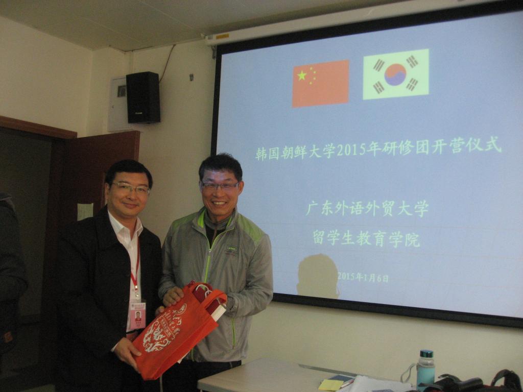 2015年1月6日,韩国朝鲜大学李相宇教授率27名学生赴留学生教育学院进行为期一月的冬令营活动。开营仪式在第七教学楼212室举行。广东外语外贸大学留学生教育学院院长梁学宏、东方语言文化学院副院长全永根出席了本次开营仪式。