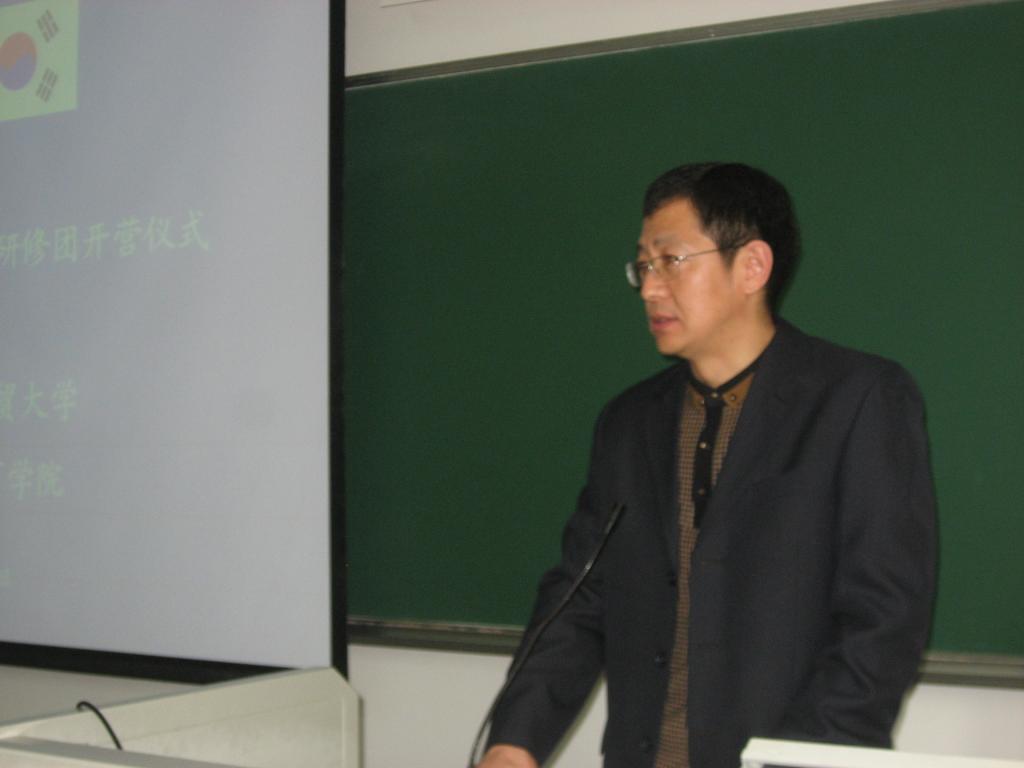 东语学院副院长全永根也作了讲话。他首先深情地回忆了自己在朝鲜大学的求学经历,同学们的到来让他想起年轻时的自己,使他的工作更有激情。他还回顾了多年来广外与韩方友好院校的合作过程,并预祝韩国同学能够在此次行程中学习进步、有所收获。