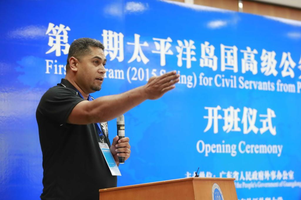 来自斐济总理办公室首席助理秘书可克、萨摩亚国家总统基金会财政部副主任拉菲和汤加教育部高级教育官员图库塔乌分别发言,他们提到,所有学员非常珍惜此次来粤学习的机会,中国的国际影响力日益提高,此次培训班将成为他们了解广东、了解中国,与中国朋友广泛建立友谊和合作的好机会。