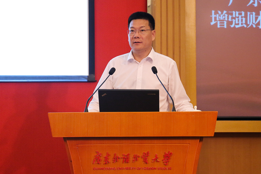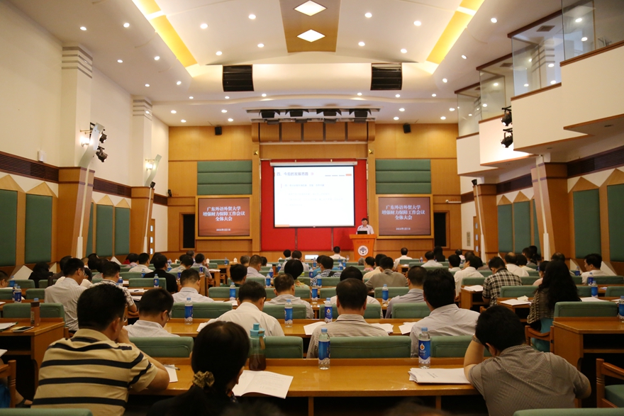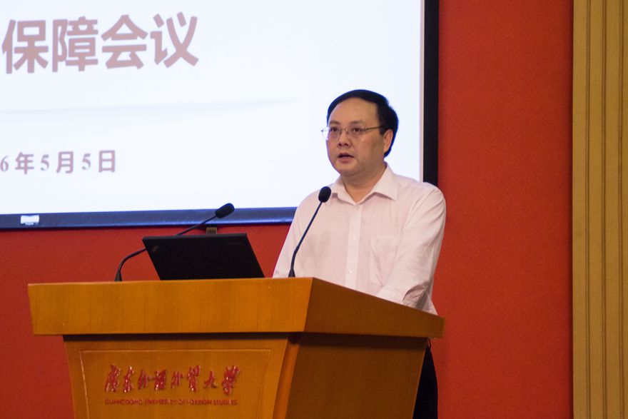 本网讯 5月5日,我校在北校区国际会议厅召开广东外语外贸大学增强财力保障工作会议。全体会议上,校长仲伟合、副校长陈林汉分别做了题为《强化品牌特色 注重优质高效 切实提高学校的财力保障水平》和《多措并举抓财力 齐心协力强保障》的主题报告。校领导,各单位行政主要负责人和财务“一支笔”、校财经工作领导小组成员、预算与投资委员会成员及相关人员参加了此次会议。会议由校党委副书记石佑启主持。