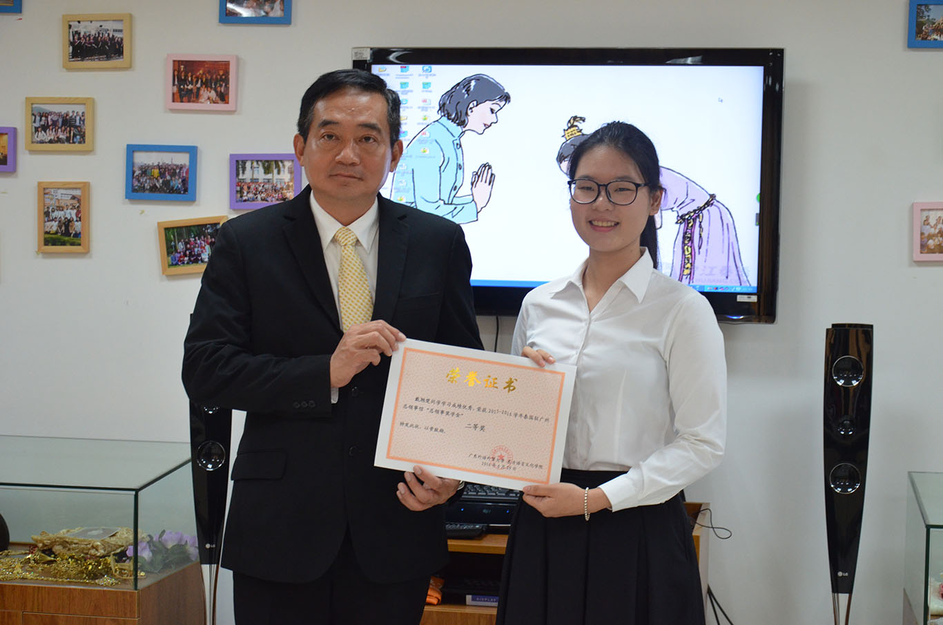 泰王国驻广州总领事馆“总领事”奖学金,是由时任泰国总领事的林培森先生(MR. Pisanu Suvanajata)于2013年初提议设立的。此次来访,现任泰国总领事瓦信•兰巴替盛捐赠了第三笔奖学金,折合人民币27624.3元,对我校泰语专业给予了大力支持和帮助。