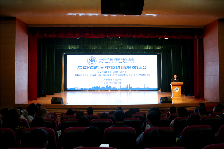 本网讯 为推进我校中外学生交流共进,帮助外国留学生认识理解中国传统文化和价值观,培养知华、友华、亲华的国际人才,12月8日下午,我校在北校六教报告厅启动中外学生系列交流会,首场活动为中英价值观对话会,羊城晚报全媒体与国际传播研究院研究员於贤德和翻译学院助理教授Stephen J. Rake,分别围绕中华价值观和中英价值观对比发表演讲。
