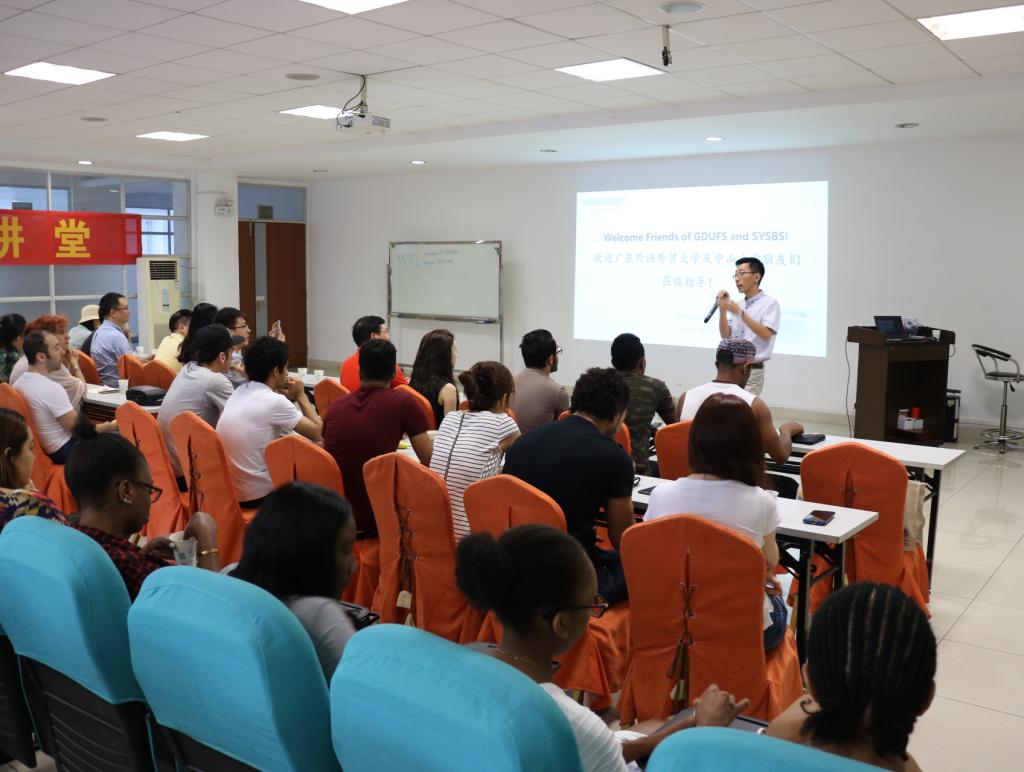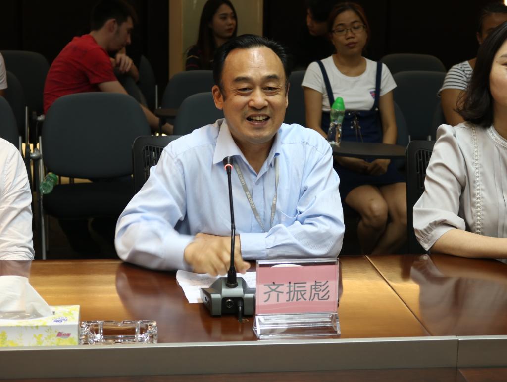 下午,留学生院的师生们前往顺德区政府座谈。佛山市顺德区外事侨务局黄建雄局长、王文敏副主任热情接待了留学生院一行。本次座谈会由王副主任用英文主持。首先,黄局长对顺德区进行了简单的介绍,接着,梁院长代表大学对此行目的进行了详细的说明。然后,王副主任详尽的介绍了顺德政治经济发展现状。