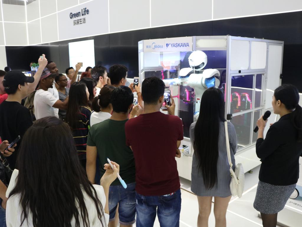 在佛山市顺德区外事侨务局的帮助和其工作人员的陪同下,留学生院一行首先来到了美的集团,参观了美的全球创新中心。广大留学生同学一边听着讲解,一边被各种高科技产品吸引着,感叹之声此起彼伏。大家为美的在科技领域的创新所震撼。