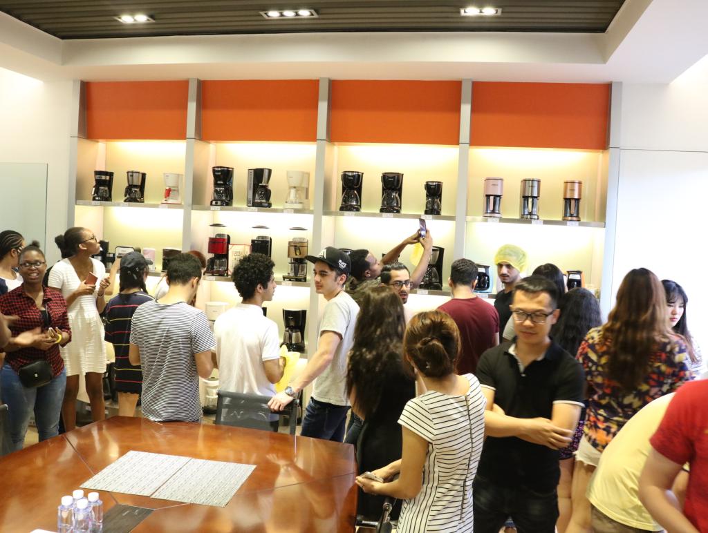 介绍会结束后,留学生院师生在刘副总裁的陪同下前往公司工厂,参观了产品研发、测试及制造等各个关节,广大同学们非常震撼。最后,同学们前往公司的咖啡梦工厂用不同的咖啡机,亲手体验冲制咖啡的过程。大家一边交流问着问题,一边品尝着咖啡。和着咖啡的香气,本次参观也推向了高潮。