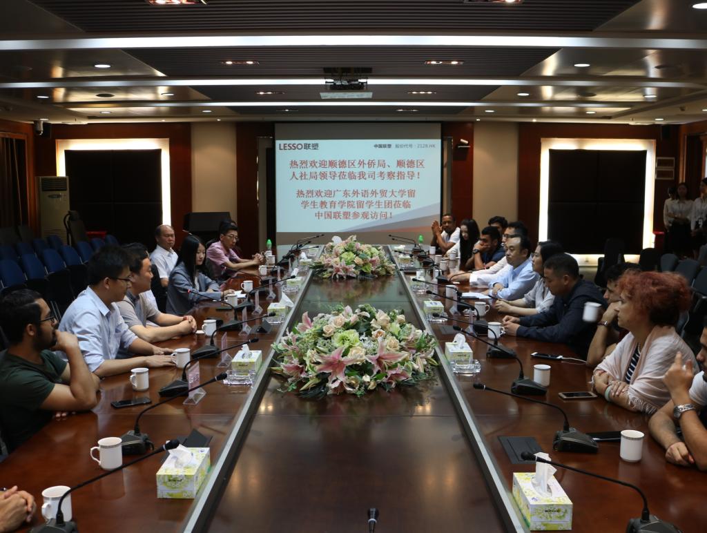 座谈会后,在黄局长等人的陪同下,留学生院师生前往顺德区龙江镇参观联塑集团。联塑学院院长齐振彪等领导热情接待了留学生院师生。