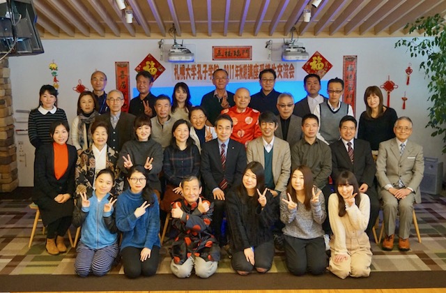 2018年2月10日,由札幌大学孔子学院主办的秋季讲座学员交流会暨迎春联欢会在大学校园举行。贴上火红的春联,挂上红灯笼并摆满中国过年最有特色的祝福装饰品,在这个充满年味儿的会场里,中方院长余六一给学员们介绍了祝福饰物的含义,学院的老师们和新老学员们在浓浓的新春气氛中亲密交流、共叙佳话。