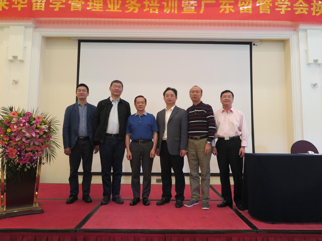 2018年4月20-21日,为期两天的广东省留管学会换届会议暨广东省来华留学管理业务培训在佛山西樵山国艺酒店召开。广东省教育厅交流合作处处长李金俊,广州市公安局出入境支队签证大队党支部副书记刑华龙,教育部来华保险项目组负责人王卫民,第八届广东留管学会会长郑道博,学会顾问梁永洪、刘传华和全省42所高校的会员单位代表参加了本次会议。我校留学生教育学院院长梁学宏,学生工作主管王一仟和学生工作人员杨惠珊代表出席。