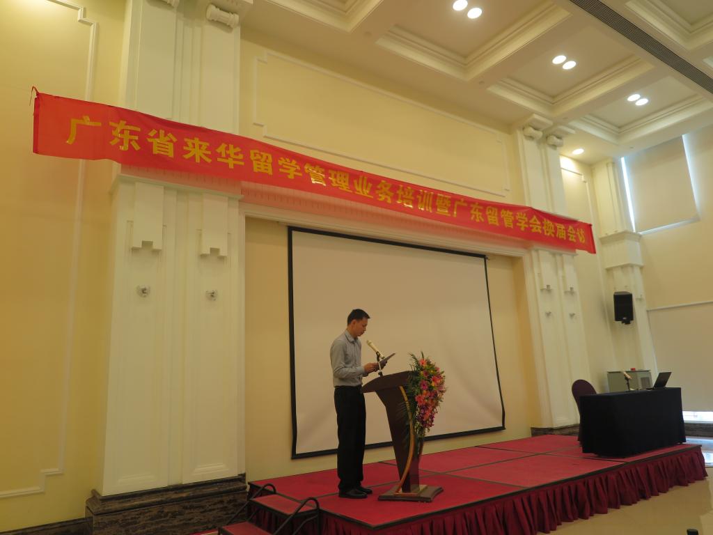 20日下午3点,第八届广东留管学会会长,南方医科大学国际教育学院党委书记郑道博主持会议。他首先对各会员单位代表的到来表示热烈的欢迎,对各会员单位一直以来大力支持学会的工作表示衷心的感谢,他希望这次业务培训能对各会员单位做好来华留学教育工作起到积极的作用。