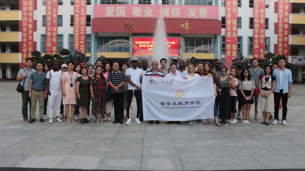 2018年7月1日至2日,我院直属党支部教工党员和八个国家14名外国留学生,在梁学宏书记带领下,先后前往广州东山中共三大会址纪念馆、清远市阳山县岭背镇浦芦洲村、清远盛兴中英文学校开展中国国情教育活动。
