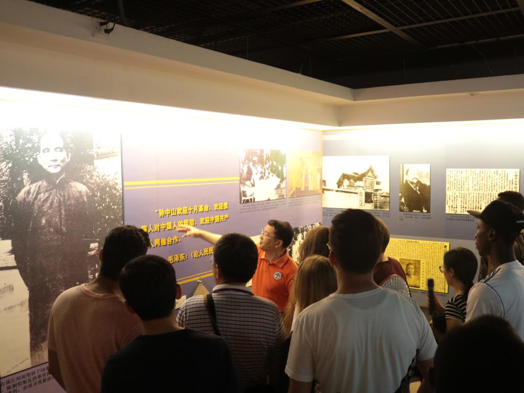 今年7月1日恰逢中国共产党成立97周年,在梁书记带领下,中外师生在中共三大会址纪念馆共同学习中共三大召开的历史背景。在参观过程中,梁书记向包括来自俄罗斯的留学生介绍了俄国十月革命与中国共产党的历史渊源。随后,梁书记简要介绍纪念馆内的中共三大与会人员,讲述统一战线的发展历程。