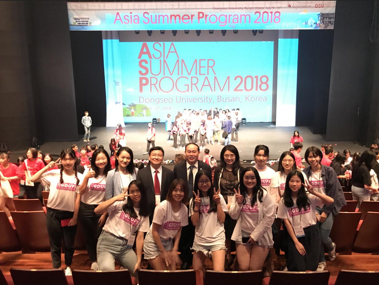亚洲大学暑期研修班(ASP)是亚洲大学校长论坛(AUPF)的子项目。ASP是一个为期三周的国际暑期项目,专注于与亚洲相关的话题,该目标是培养熟悉亚洲文化、有广阔创造性思维的并具备国际合作才能的未来的领导人。来自亚洲及其他地区的多个高校学生参与此项目。2017年该研修班在我校举行,共有来自13个国家的156名师生参加,为期三周。