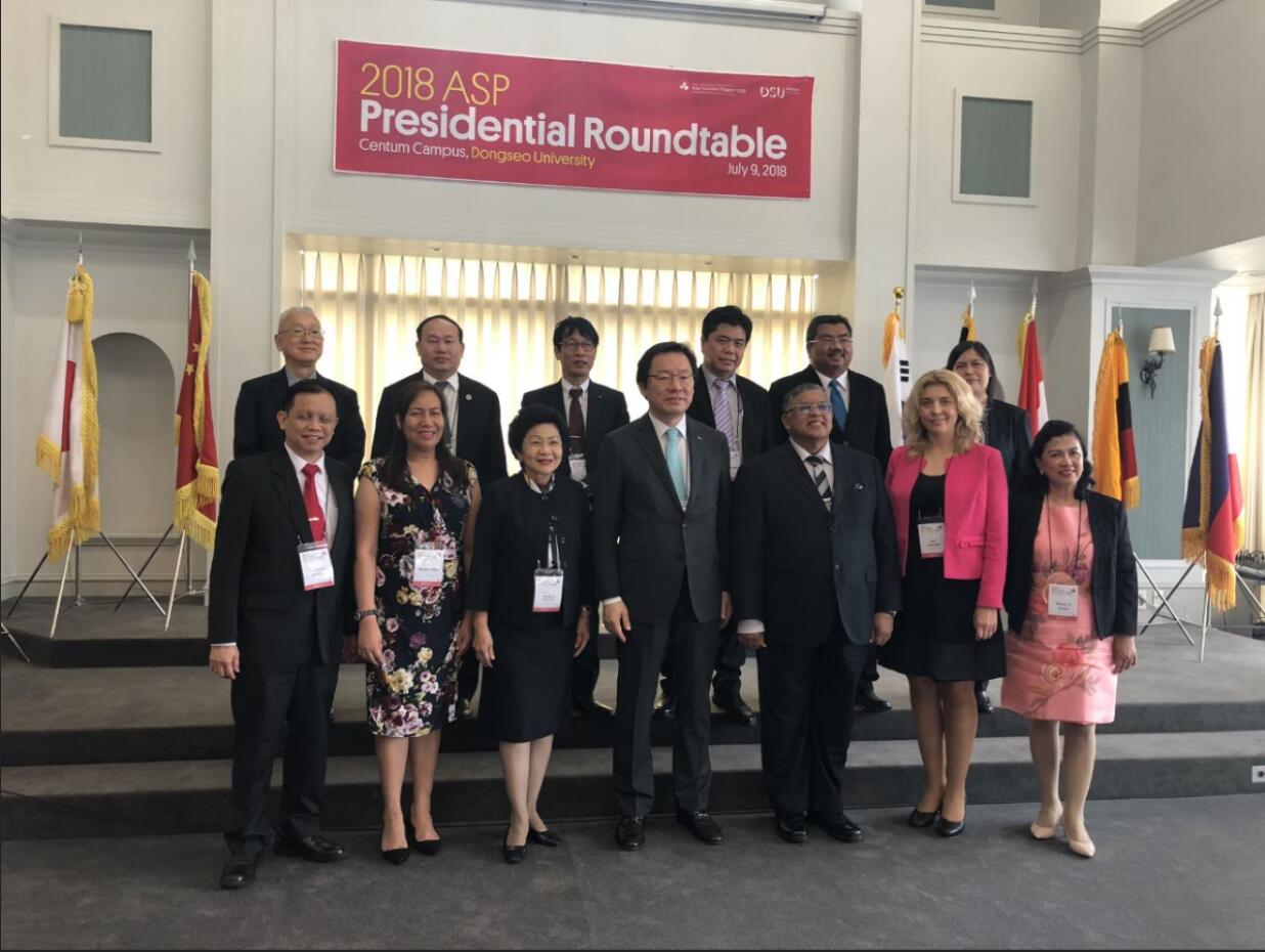 同日,我校代表团出席了由韩国东西大学主办的亚洲校长圆桌论坛。留学生教育学院院长梁学宏代表我校围绕着教育国际化发展的最佳实践这一主题进行大会陈述,介绍了我校国际化发展的现状、优势及面临的挑战,分享了我校留学生教育的有益经验及发展规划。