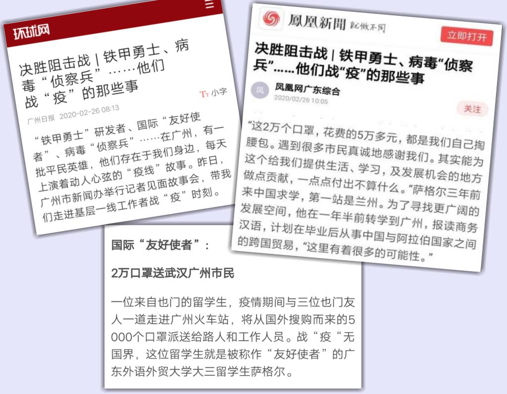 媒体聚焦报道我校留学生萨格尔等平民英雄的战“疫”故事