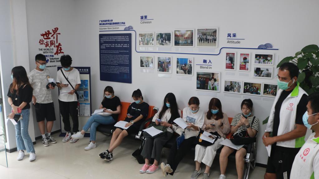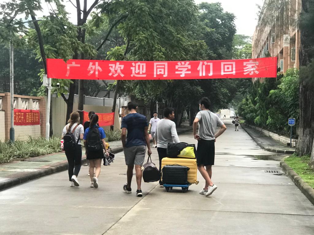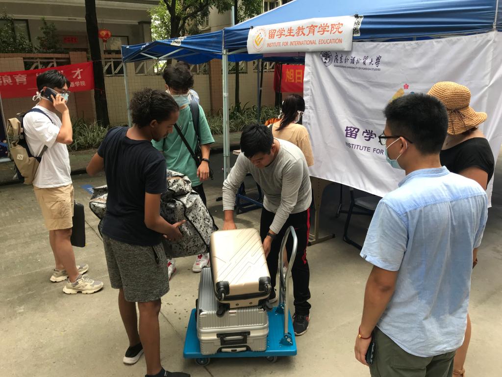 疫情开始以来一直住在校内的留学生,加入到志愿者行列中,为返校留学生做校园指引和托运行李。