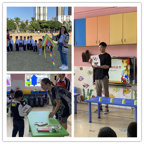 当天活动分为“走进课堂”、“快乐厨房”“英语活动课”“外语角”四个部分。活动上,留学生走进幼儿园课堂,和孩子们进行课堂分享、游戏互动,寓教于乐,其乐融融。