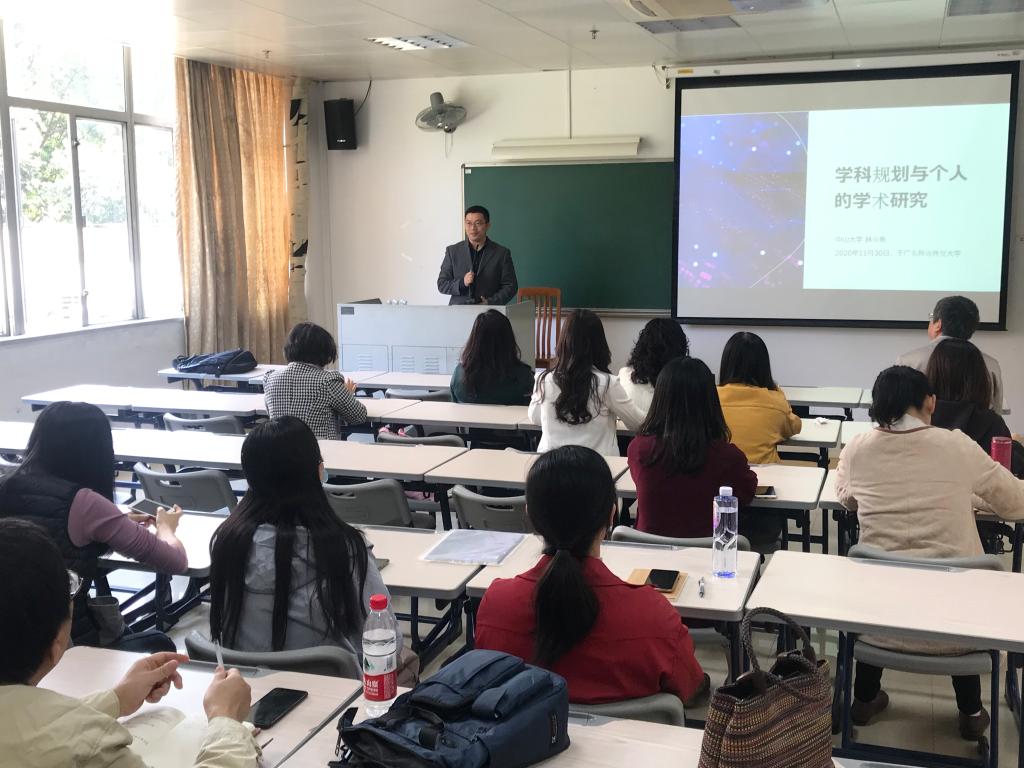 2020年11月30日下午,我院特邀中山大学博士生导师林华勇教授为我院教师作学术报告,主题为“学科规划与个人学术研究”。作为我院举办的建校55周年系列活动之一,本次报告会是高层次项目申报交流指导工作的一项重要安排,也是教师发展工作坊的一次活动。我院院长蔡红、副院长吴艳及近20名教师参加本次学术报告会,会议由副院长刘明主持。