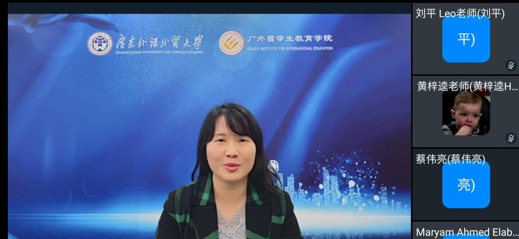 埃及学员代表玛蒂娜、佛得角学院代表兰心、日本学员高山宽菜,葛西美穗分别在发言中分享了自己参加本次线上汉语交流营的感受和收获,并向举办方表达了衷心的感谢。玛蒂娜说,尽管无法亲自来到中国学习,但是能有机会参加本次线上学习,与来自其他国家的同学们相互交流,收获的不仅仅是语言的精进,更有来自他国的云端之谊。兰心提到,即使相隔千山万水,也能隔着屏幕感受到广东外语外贸大学老师的拳拳之心和殷殷之情。在疫情结束后,一定会来到中国,来到广州,一一探索曾在线上领略的岭南风光。高山同学表示,语言学习之路是在实践中的锤炼之路。项目开始之初的羞于开口,逐渐在老师的教导和同学的鼓励之中转化为激励自己学习汉语的自信。葛西同学说,两周的学习转瞬即逝,虽然短暂,却内容充实,希望以后可以有更多机会参加各类型的学习及文化交流。