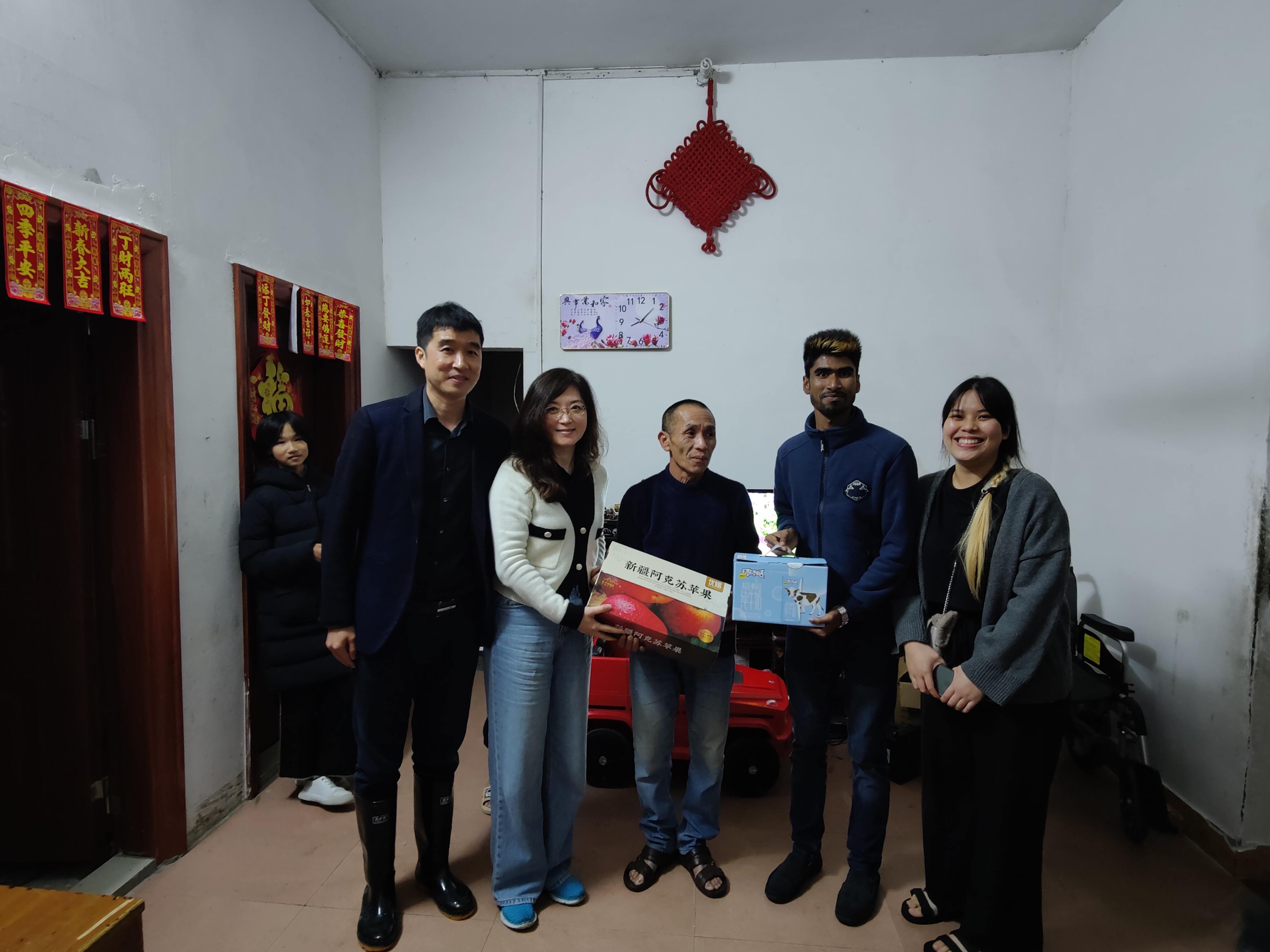 27号晚,留学生一行在我校驻村干部和阳陂村村委领导陪同下走访慰问了阳陂村贫困农户。蔡红院长代表留学生教育学院给贫困农户送上牛奶、水果慰问品,了解脱贫户生产生活情况。商杰强书记向留学生展示农户家中的“巩固脱贫成效明白卡”,介绍我国消除绝对贫困的伟大成就和防返贫监测帮扶机制。