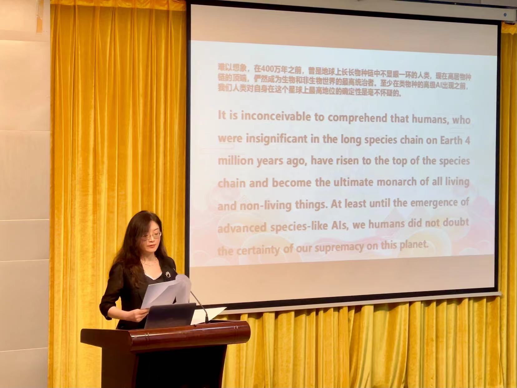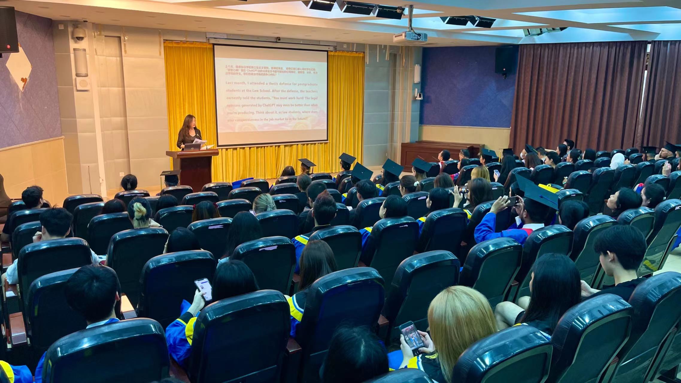 蔡红院长首先代表全院教职工向同学们的顺利毕业和结业表示祝贺,并对来自世界各国的同学们疫情以来的守望相助表达深深的感谢。蔡红院长以人工智能发展为主题,向同学们分享了AI对个人未来、社会进步、教育变革等领域所产生的重大影响。“悲观者正确,乐观者成功”,她希望同学们能用全新的视角和更为开放的心态,去理解和迅速适应这个巨变中的世界,在自己全面的、自由的发展中为更美好的明天、更美好的世界贡献力量。