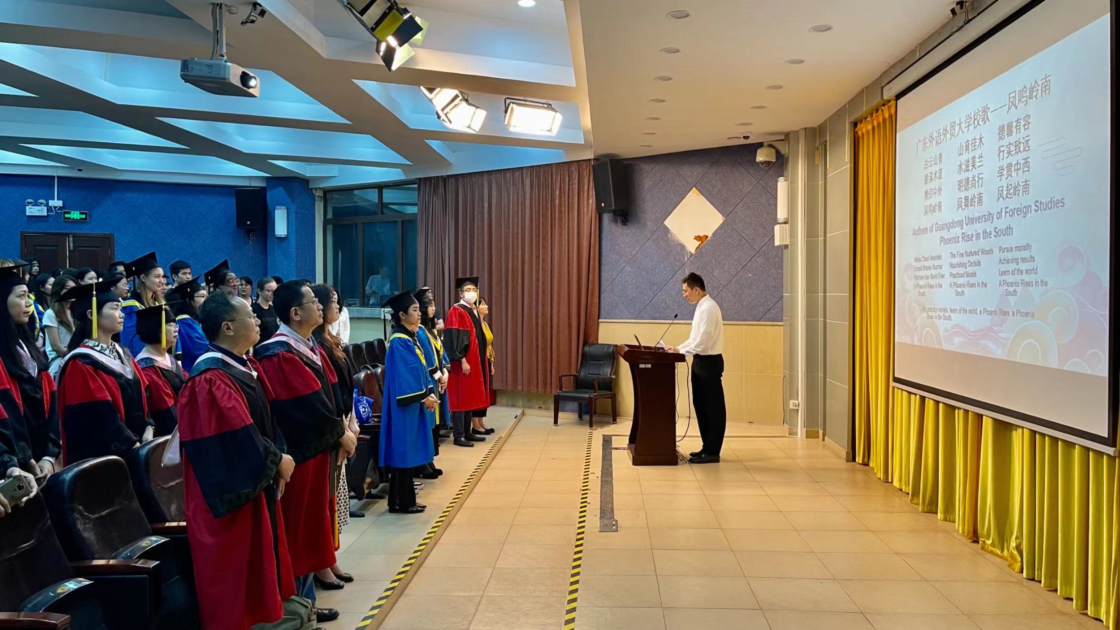 6月16日上午,广东外语外贸大学留学生教育学院在疫情后的首次线下结业典礼在七教水上报告厅举行。院长蔡红,副院长刘明、吴艳,以及全体教职工和国际学生们共同见证了这个难忘的时刻。