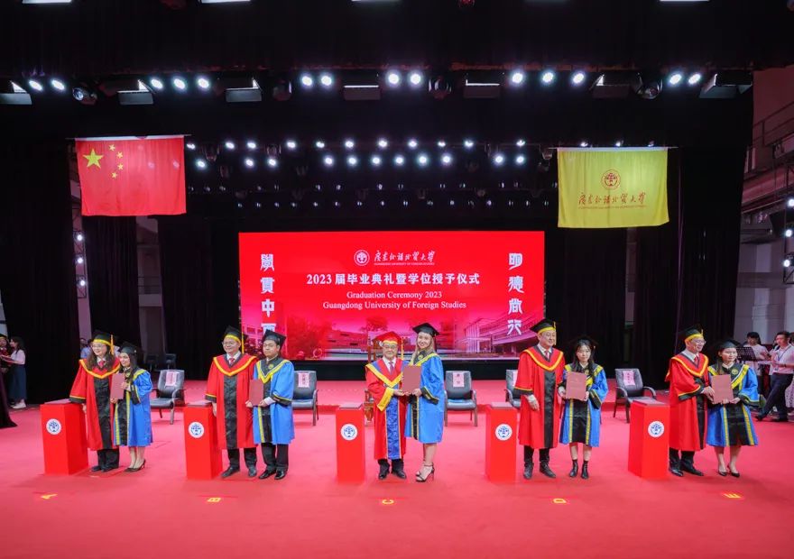 6月18日上午,广东外语外贸大学2023届首场毕业典礼暨学位授予仪式在白云山校区云山会堂举行,2023届7293名广外毕业生将从这里扬帆远航,其中共有35名国际学生出席了本次毕业典礼和学位授予仪式。校党委书记、校长石佑启,校领导、主礼教授为毕业生们拨穗正冠、颁发学位证书,勉励毕业生们勇担时代使命,奋楫扬帆远航。为让更多师生校友一起见证2023届毕业生的美好时刻,本次毕业典礼采用“线下+云端”、“主会场+分会场”相结合的方式同步进行。毕业典礼线上直播观看量达5万人次,获点赞超13万次。
