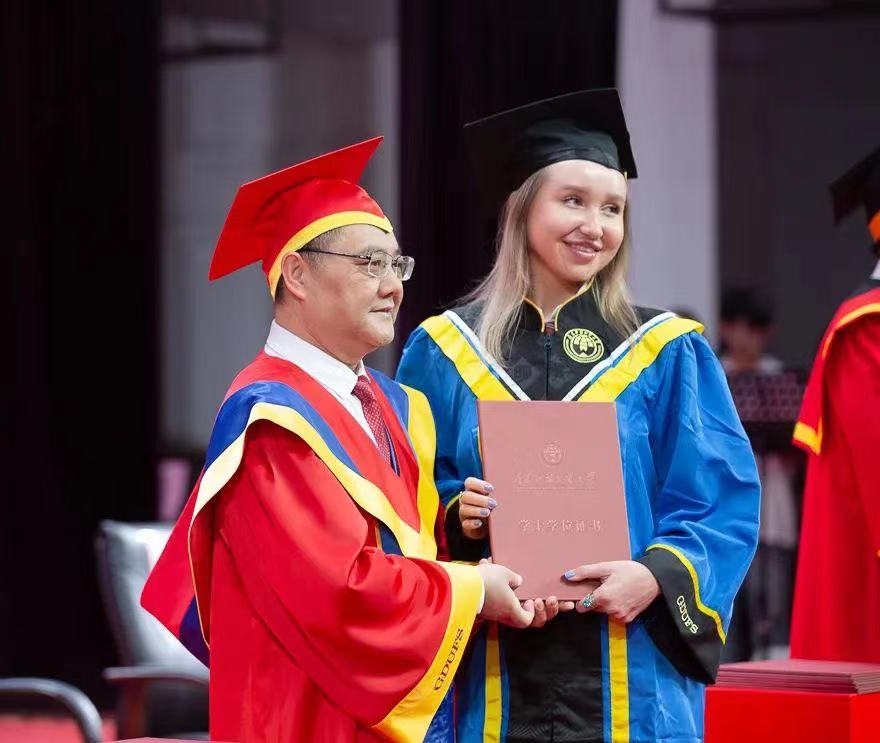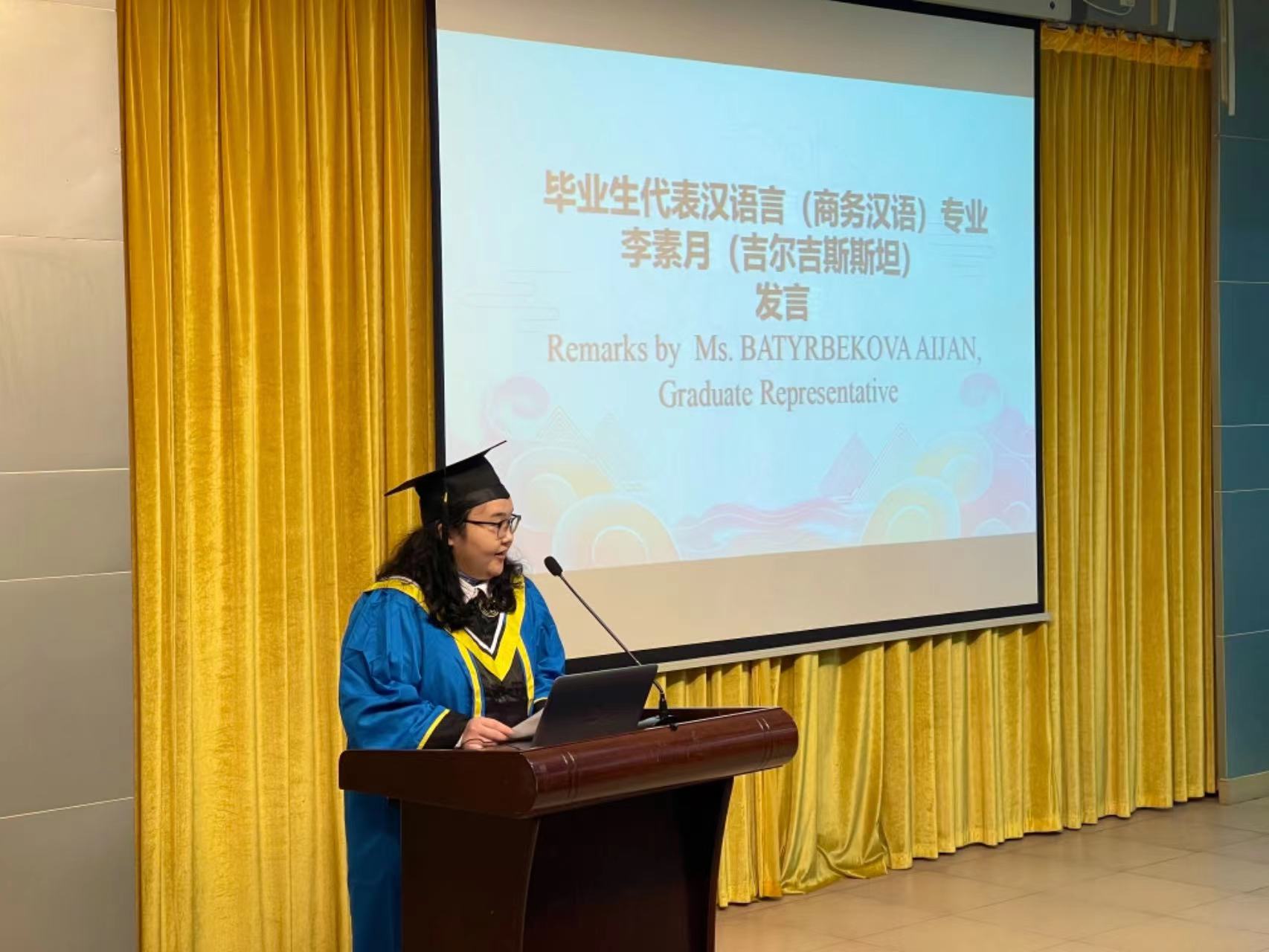 吉尔吉斯斯坦籍学生李素月代表毕业国际学生上台发言