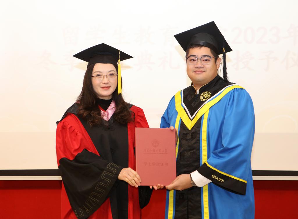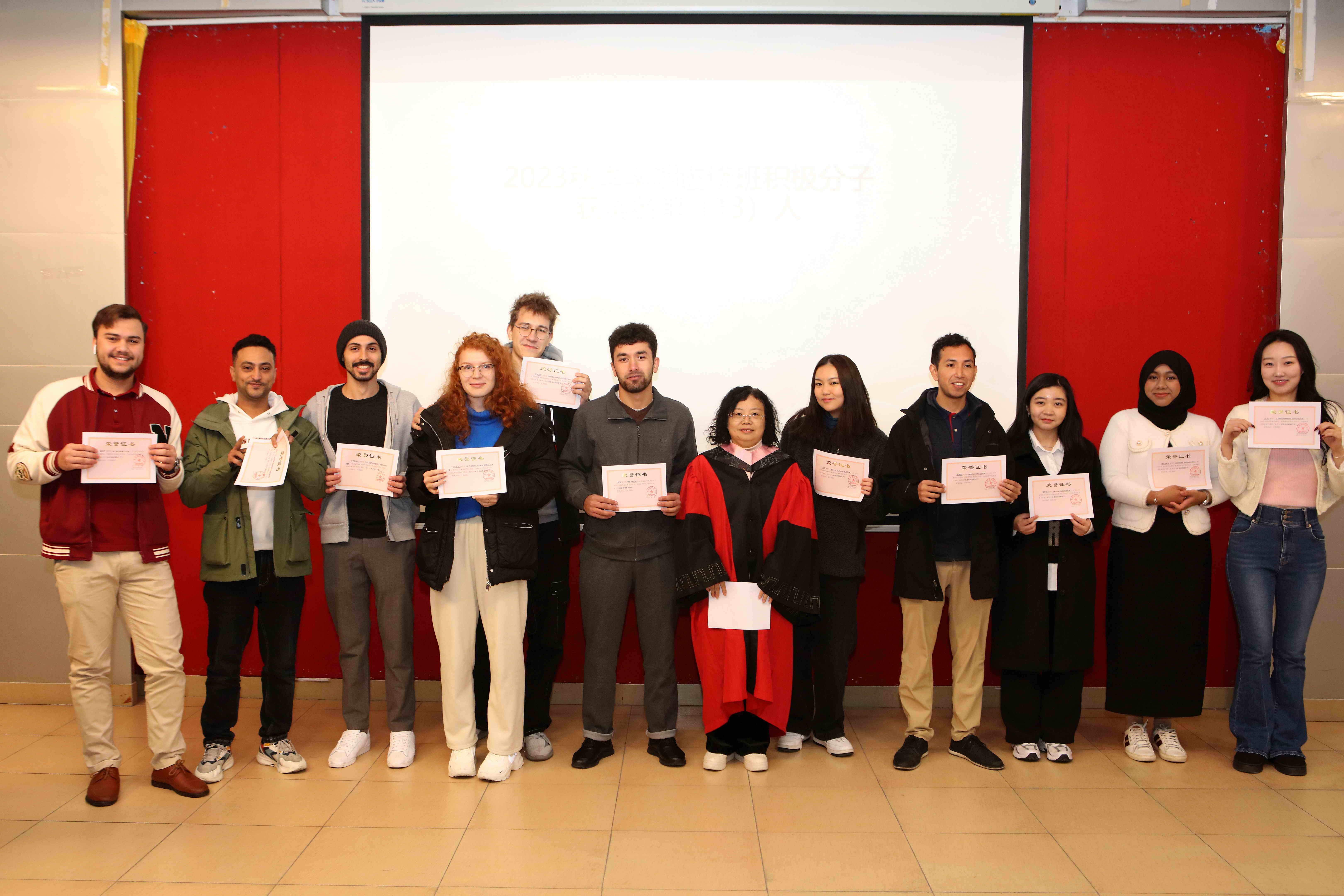 随后,学院领导为2023年冬季毕业留学生、留学生院优秀毕业生、2023秋季学期汉语进修班获得“优秀学生”、“社会活动积极分子”的同学依次颁发证书。