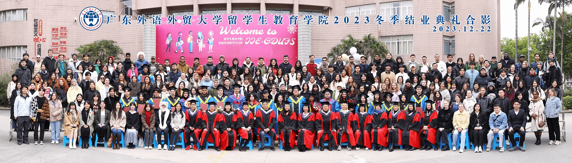 12月22日上午,广东外语外贸大学留学生教育学院2023年冬季毕业典礼暨结业典礼在第七教学楼水上报告厅顺利举行,留学生教育学院院长蔡红,副院长刘明、吴艳,办公室主任周泉,全体教职工和来自五大洲的留学生共同迎接新学期的到来。本次开学典礼由学生活动主管黄梓逵主持。