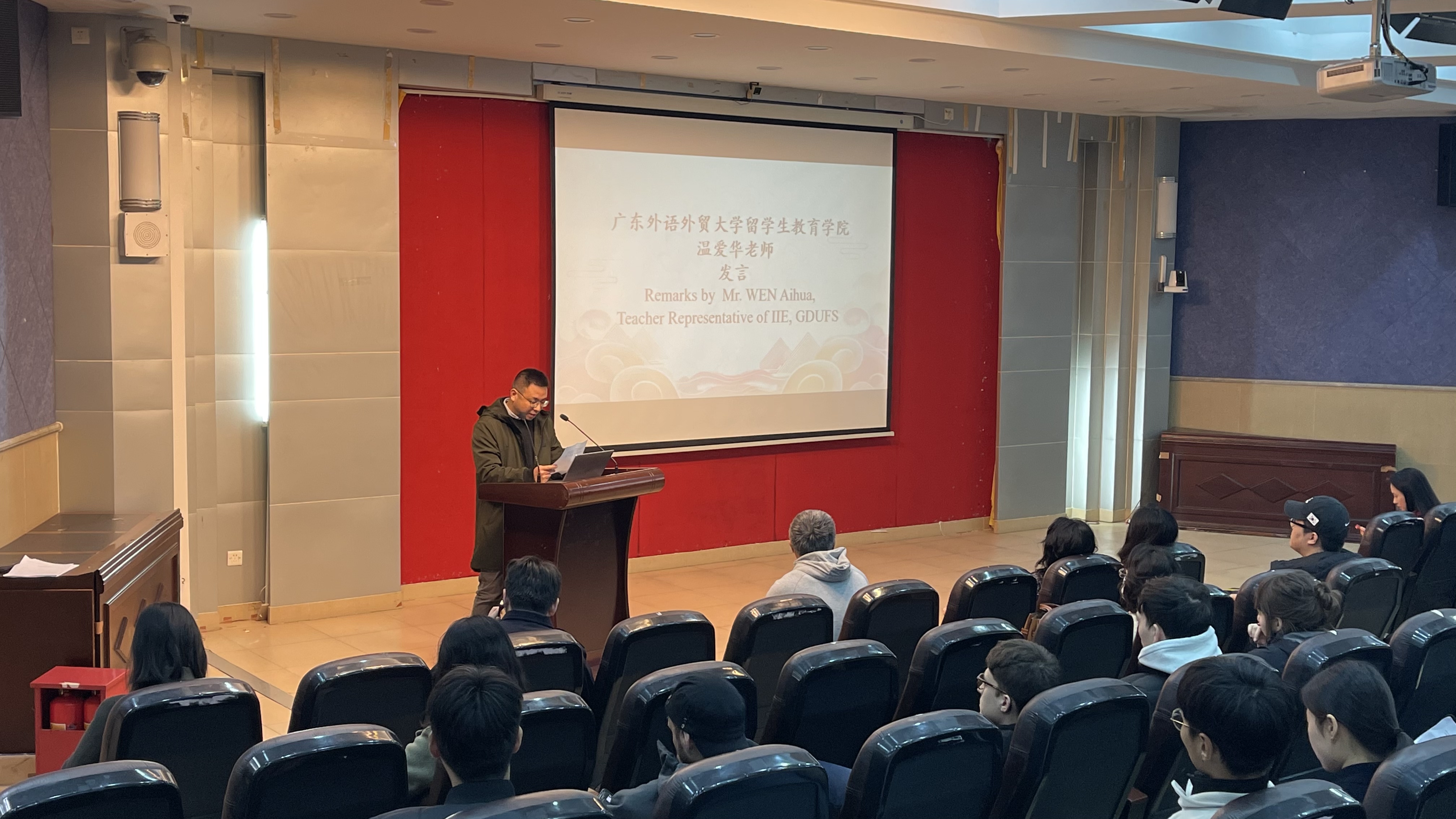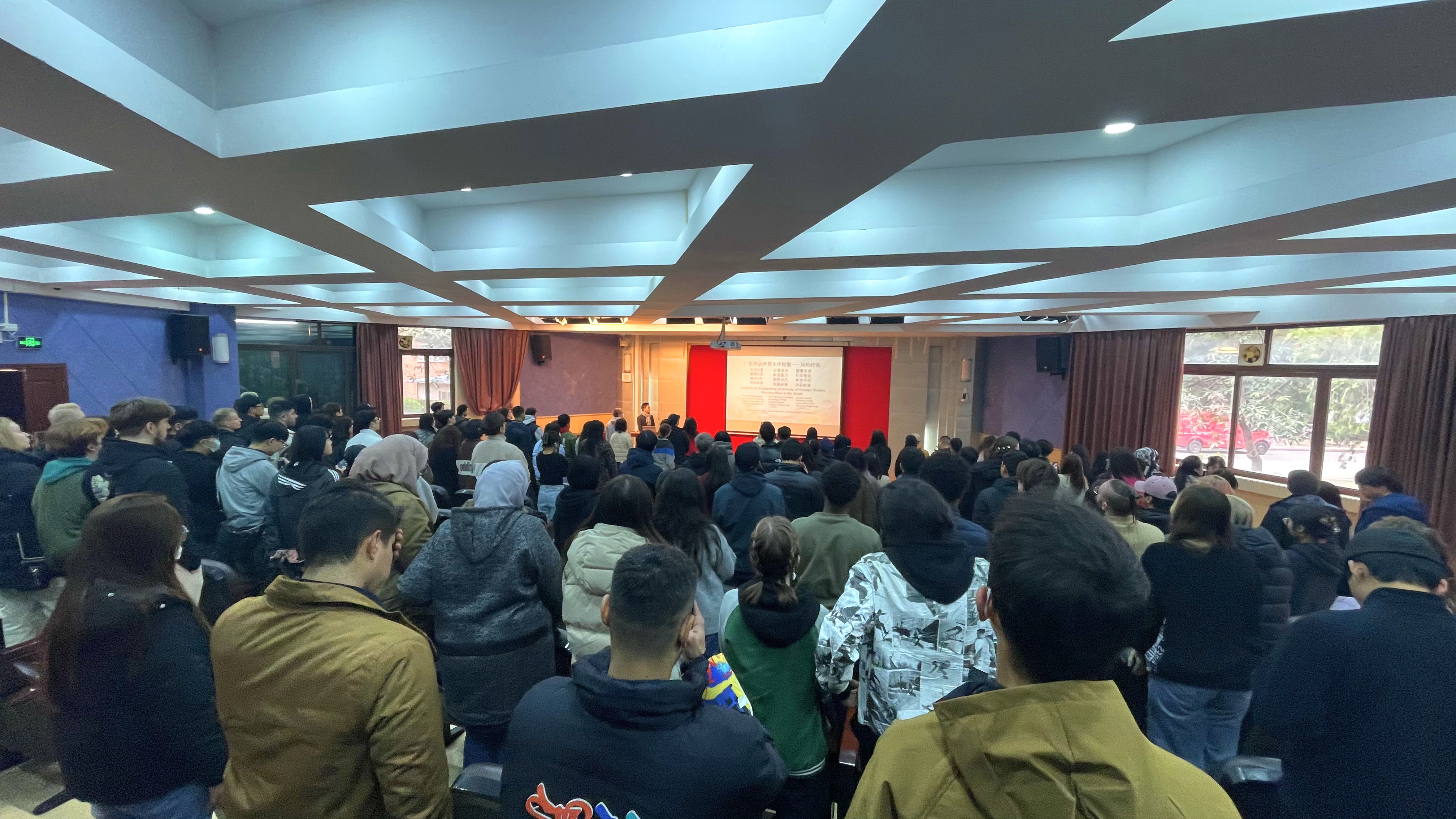 2024年2月26日下午2:30,广东外语外贸大学留学生教育学院2024年春季开学典礼在第七教学楼水上报告厅举行,全体教职工和来自五大洲的留学生共同迎接新学期的到来。开学典礼由学生活动主管黄梓逵主持。