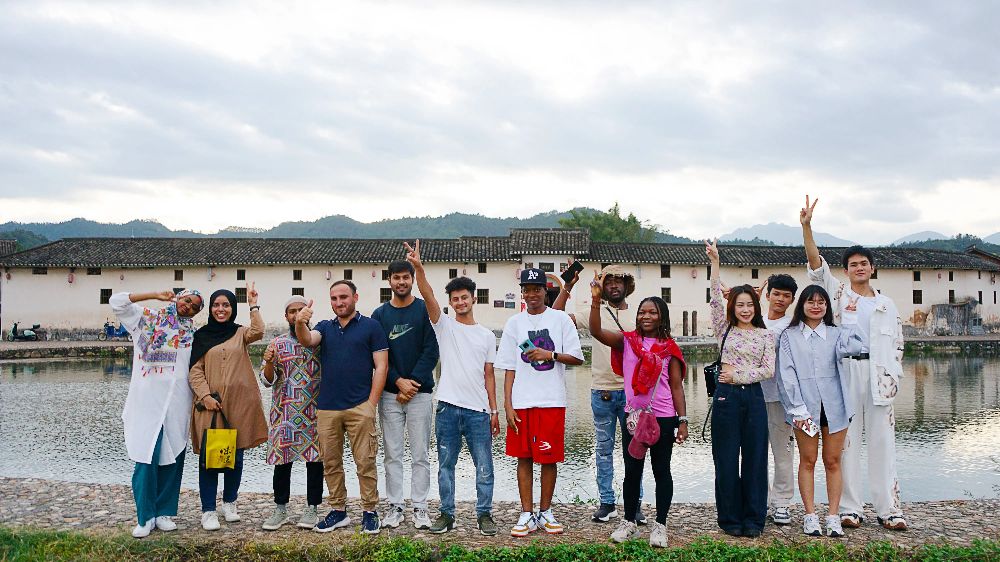 国际留学生在满堂客家大围留影