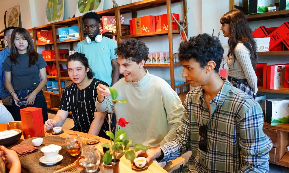 印度留学生Gandhrav和伊朗留学生Daliri、Donya都来自世界著名的茶产国,“在我们的国家,人们几乎每天都喝茶。”而在体验中国茶后,他们都纷纷表示,“非常喜欢,希望能带一些中国茶给亲朋好友品尝。”Daliri还向记者分享道,“我祖母家就有一片小茶园,我从小就与茶相伴成长。不同的茶叶品种、采摘和生产方式、冲泡方式都能让人有不同的品鉴体验,我很喜欢中国红茶。”来自格鲁吉亚的Kevkhishvili表示,这是他第一次来到韶关、第一次体验中国茶文化、第一次了解茶产业的运作和发展。这段难忘的经历不仅让他增长了见闻,还让他牢牢记住了韶关这个美丽的城市,并希望能够更深入地了解中国文化。
