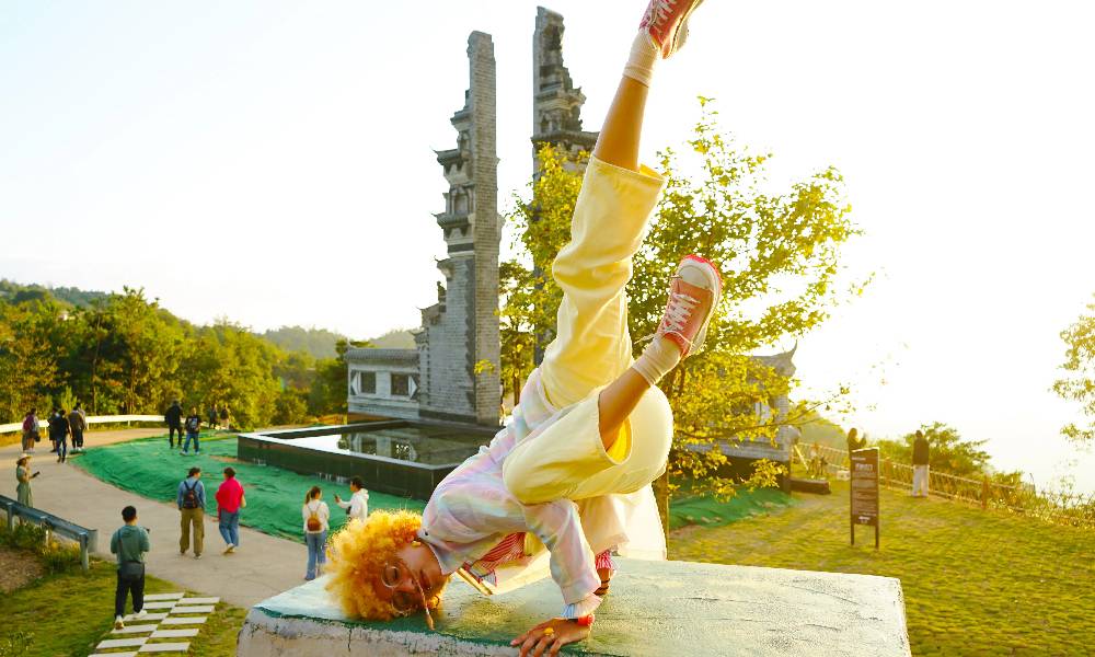 “九山半水半分田”——位于广东中部以北的韶关市新丰县是典型的山区县,冬无严寒、夏无酷暑,山丘起伏、郁郁葱葱,是春赏山花、夏弄清风、秋观枫叶、冬踏冰雪的绝佳去处。新丰县青云山上的岭南红叶世界是此行的第一站,这里清凉舒爽的山风一扫广东夏末的炎热,让人顿觉神清气爽、心旷神怡。大家登上山巅之时恰逢日落,放眼望去,群山绵延不绝、云雾缭绕,玫瑰色的云彩层层叠叠、变幻多端,一排排枫树也被初秋染上了红晕,好一副如梦似幻的仙境画卷。走在观日坪上的“天空之境”,国际留学生们一边感叹中国山河之美,一边不停地按下快门记录这难得的风光,巴西留学生Agnes还在夕阳下跳起了霹雳舞。
