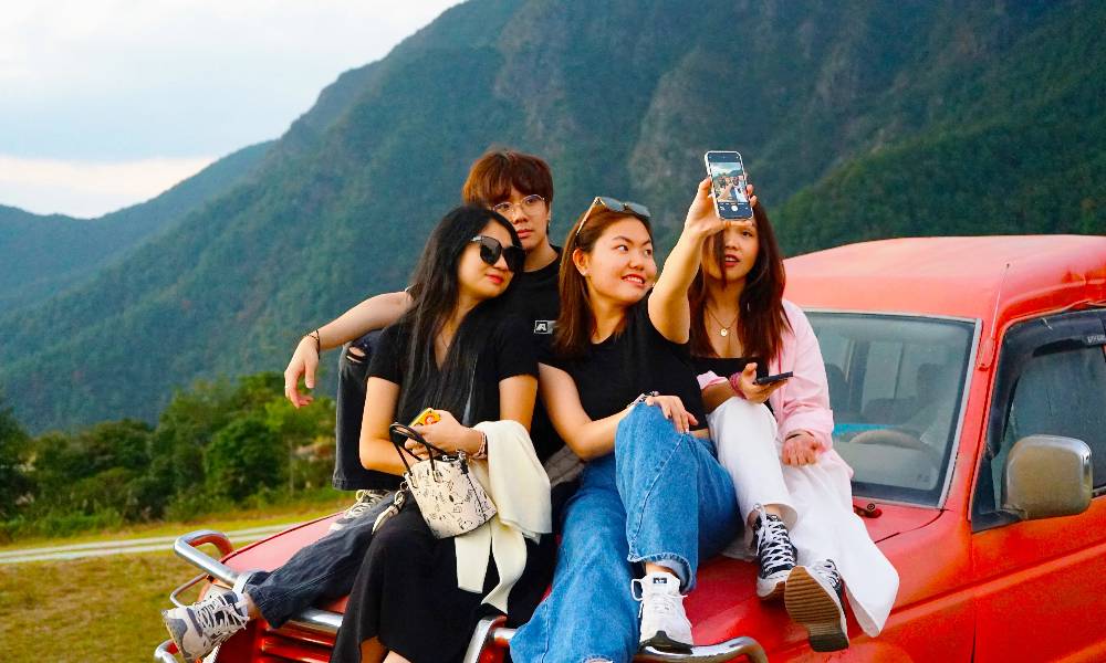 “这里的景色太让人震撼了!”“我很享受这里带给我的平静。”“身处此地,静静看着群山让人感到很平和。”“很开心能参加这次活动,也很感谢热情友好的中国人!”来自巴基斯坦的Ihsan、Zahid,津巴布韦的Teddy结伴在山间游玩,并兴奋地向瞭新社记者讲述当刻的感受。而来自美国科罗拉多州的Kendra则感慨地表示,自己从小在美国落基山长大,来华后多在城市里生活,鲜少走进乡村。美丽的青云山让她想到了家乡,让她倍感亲切和温暖,而青云山与落基山迥然不同的气温、植被、湿度等又让她感到非常新鲜有趣。